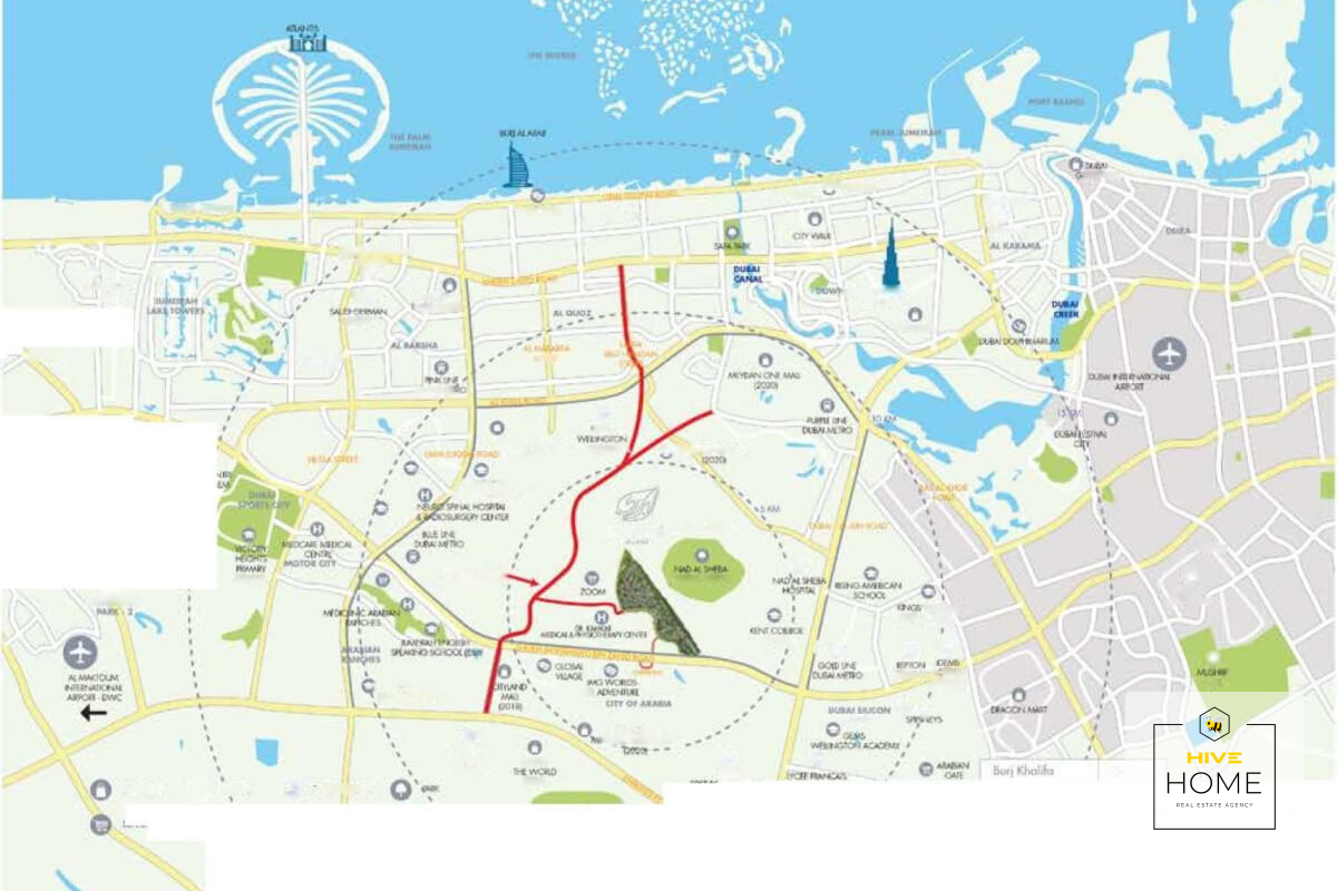 ■ Рядом расположены сообщества Arabian Ranches и Dubai Hills.